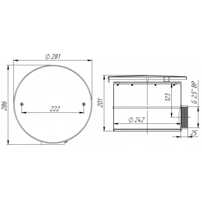 Комплектуется прижимным фланцем, уплотняющей прокладкой и винтами. Антивихревая крышка препятствует образованию воронки.