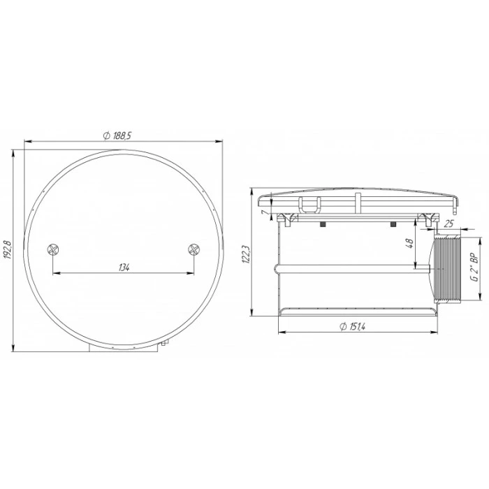 Комплектуется прижимным фланцем, уплотняющей прокладкой и винтами. Антивихревая крышка препятствует образованию воронки.