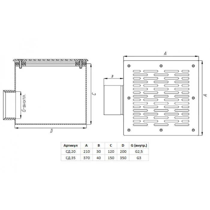 Донный слив Xenozone квадратный 350х350х150 (пленка)
