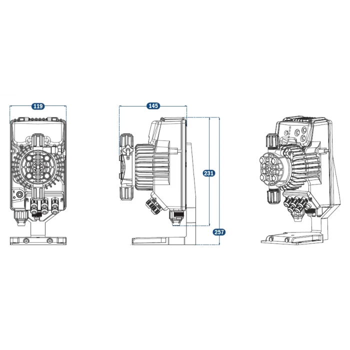 Электромагнитный дозирующий насос Seko Tekna Evo APG 803 с постоянной и пропорциональной производительностью. Постоянная производительность регулируется вручную, а пропорциональная согласно внешнему аналоговому (4÷20 мА) или цифровому импульсному сигналу (например, от расходомера). Отличаются невысоким энергопотреблением, так как электромагнит нуждается в энергии только при запуске насоса. Корпус, соединения, монтажный комплект насоса выполнены из PVDF. Материал обладает высокой стойкостью к реагентам, отличными механическими характеристиками и низким удельным весом. Ручка-регулятор (% производительности и значение "n" в режиме умножения); 6 состояний цифрового переключателя: 3 в режиме деления (1,4,10=n), 1 в режиме умножения (n=1÷10), 1 от сигнала 4÷20 мА, 1 постоянный расход; Дополнительные функции при помощи DIP-переключателей.