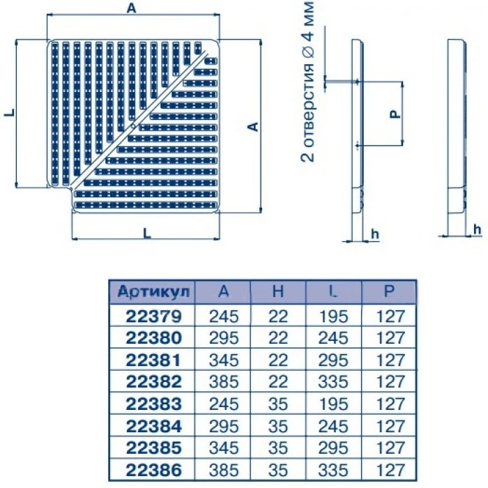 Элемент угловой 90 гр. для переливных каналов 22х335 мм