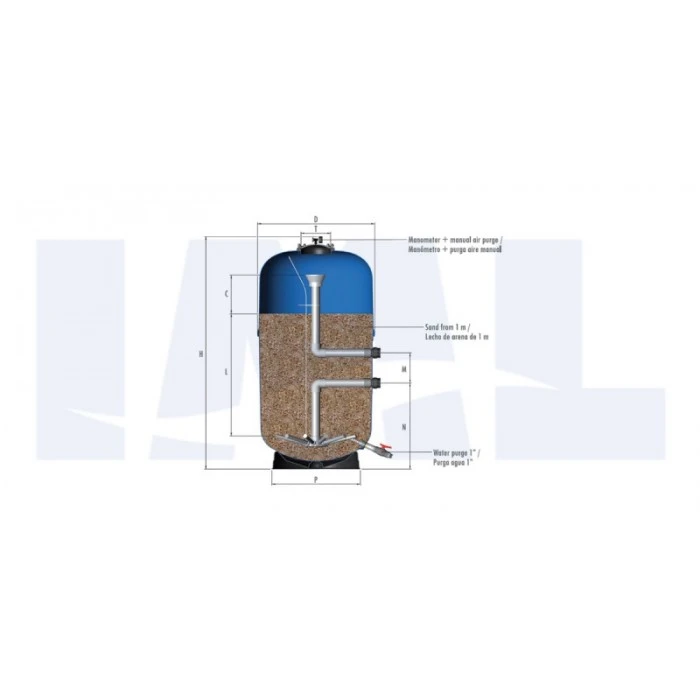 Внимание! Боковой вентиль и песчаная загрузка не входит в комплект поставки. Циркуляцию воды через фильтр осуществляет насос, который приобретается отдельно.