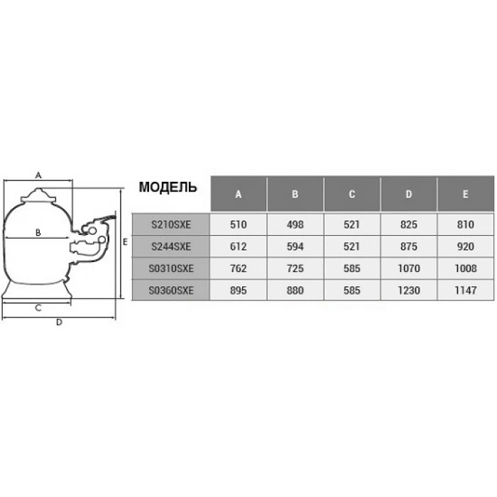 Фильтр песчаный 22 м3/ч PRO SIDE с боковым подсоед. (S0310SXE). Производительность - 22м3/ч. Диаметр внутренний - 725 мм, тип подсоединения - боковое. Предназначен для очистки воды в бассейнах от механических взвесей. Состоит из бочки с раздвижными самоочищающиеся сепараторами и вентиля. Бочка фильтра - это резервуар для фильтрации воды. В нижней части бочки находятся сепараторы на шарнирах, предназначенные для отвода профильтрованной воды. При помощи вентиля осуществляется управление режимами работы фильтра. В качестве фильтрующего материала выступает кварцевый песок.