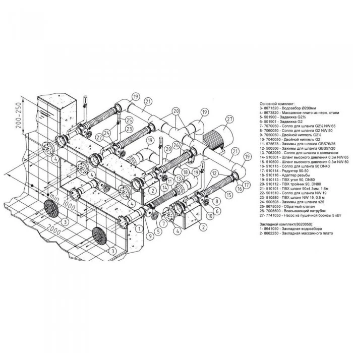 Гидромассаж Combi-Whirl, 2 всасывающие, 4 подающие форсунки (основной комплект), насос 5,5 кВт