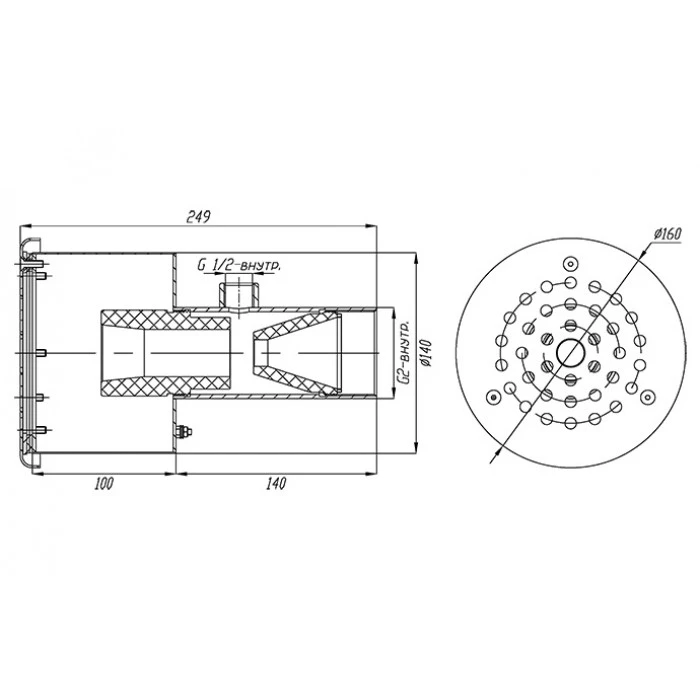 Гидромассажная форсунка 20-40 м3/ч AISI 316, Xenozone (пленка)