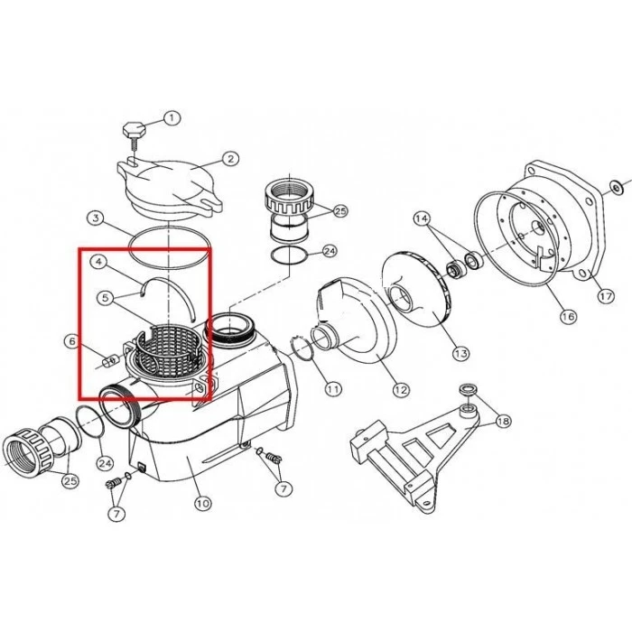 Корзина префильтра для Kripsol KSE, RKS 190.A предотвращает попадание волос и крупных грязевых частиц в насос.