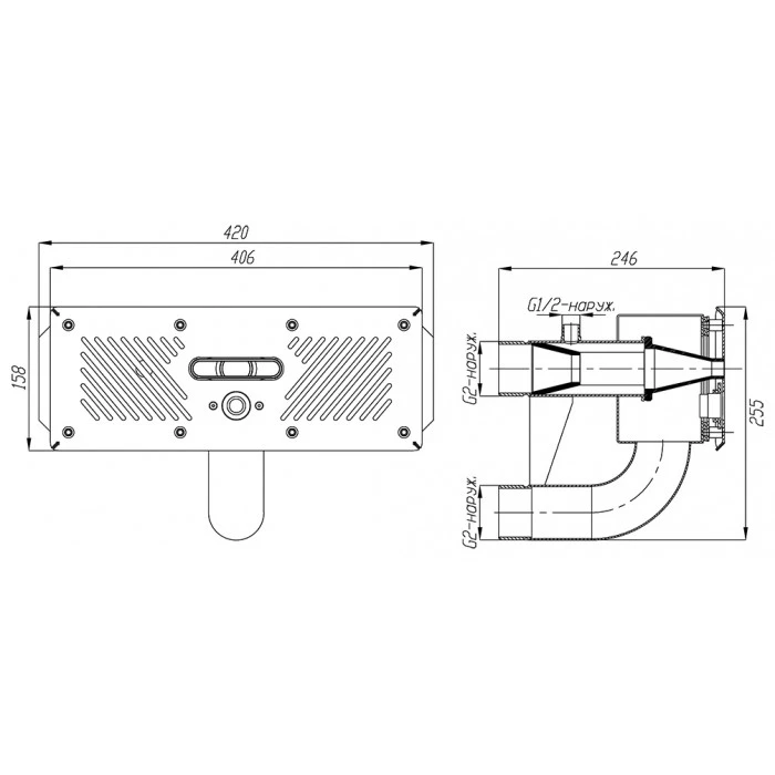 габаритные размеры: лицевая панель ‒ 405х157 мм, общие ‒ 405х254х246 мм;