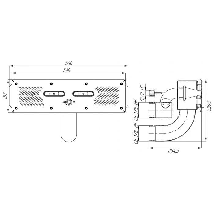 Габаритные размеры: лицевая панель ‒ 545х157 мм, общие ‒ 545х298,6х253 мм;