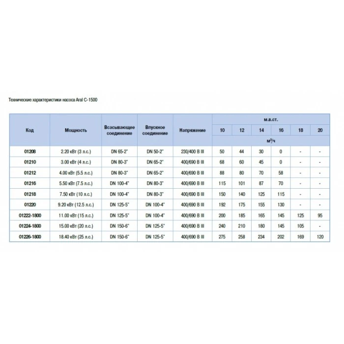 Насос Aral C 1500, 88м3/ч, 400/690 В, 4,0 кВт