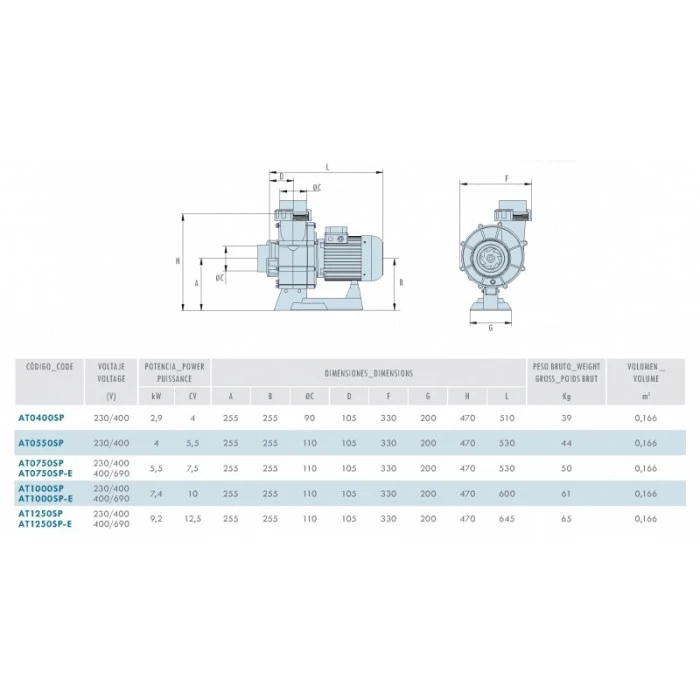 Самовсасывающий насос Atlas для бассейнов без фильтра предварительной очистки. Корпус насоса изготовлен  из  полипропилена армированного стекловолокном. Частота вращения – 3000 оборотов в минуту. Насос идеально подходит для применения в контуре систем аттракционов. В зависимости от модели насос имеет бронзовую или пластиковую крыльчатку. Вал изготовлен из нержавеющей стали AISI 316-L. Защита двигателя IP-55.