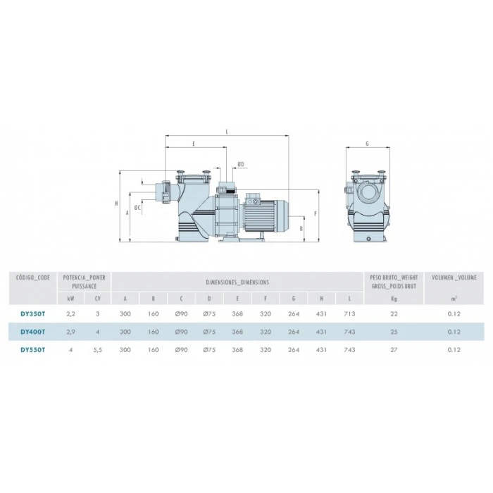 Центробежный насос самовсасывающий Big Discovery для бассейнов (самовсасывание до 2-х метров). Насос оснащен предварительным фильтром с большой емкостью (8 литров). Крышка предварительного фильтра изготовлена из прозрачного поликарбоната. Корпус насоса изготовлен из полипропилена и армирован cтекловолокном. Вал изготовлен из нержавеющей стали AISI 316-L. Защита двигателя IP-55. Насос оснащен клеевыми соединениями (диаметр входного соединения 90 мм, выходного - 75мм).