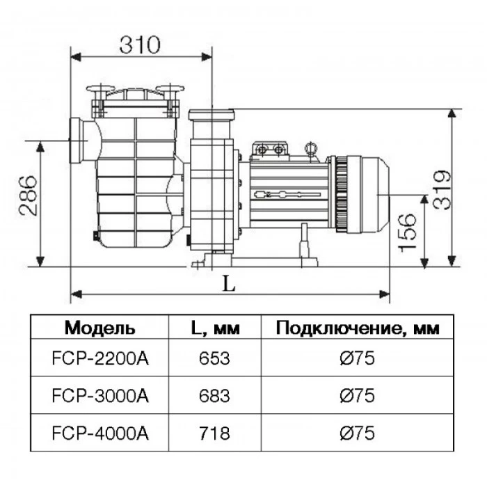 Насос FCP-3000A, 44м3/ч, 380 В, 3,0 кВт с префильтром предназначен для использования в фильтрационных системах бассейнов.