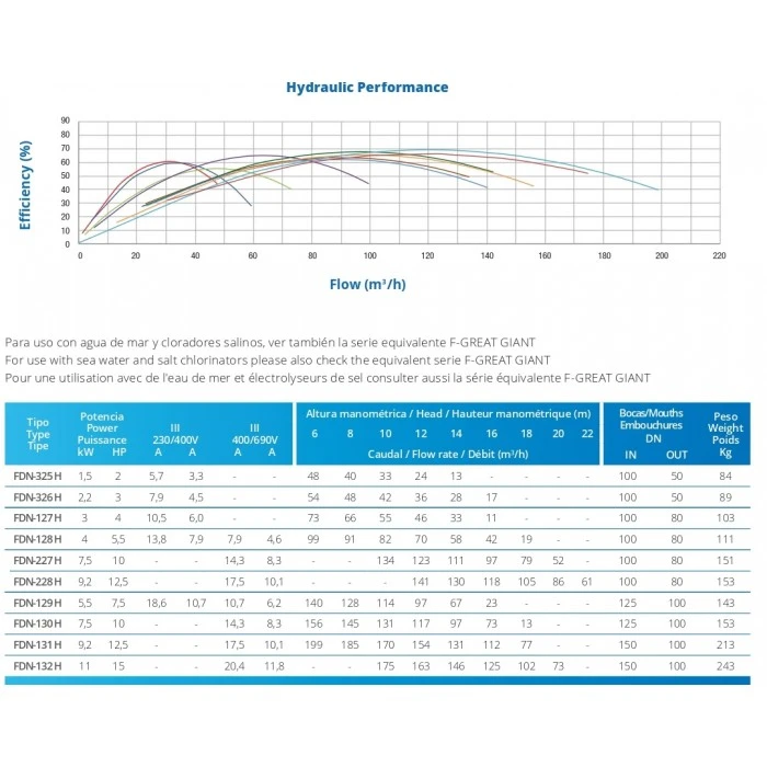Мощный чугунный насос с префильтром FDN-325 Н 33 м3/ч Н=10, 1,5 кВт, 400 B имеет увеличенный ресурс работы и сниженный уровень шума. Очень тихие насосы, обеспечивающие большой расход, что делает их оптимальными для больших бассейнов. Все детали, контактирующие с водой, проходят катафорезную обработку, которая значительно продлевает срок службы чугуна, поскольку катафорез является одной из лучших доступных на сегодняшний день антикоррозионных и антиоксидантных обработок. По запросу весь ассортимент доступен в исполнении из бронзы или нержавеющей стали.