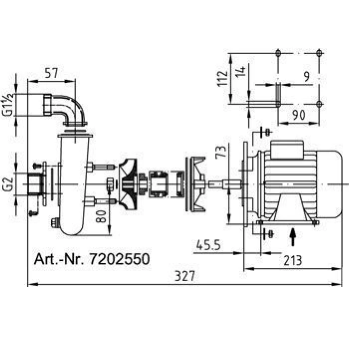 Насос FitStar (Hugo Lahme), 0,5 кВт, 230 В, 50 Гц, тип RBS, всас. вых. 2" НР, напорн. вых. 90° G1½, пушечная бронза