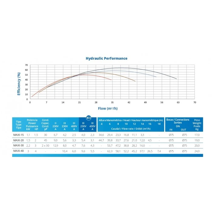 Насос MAXI-40T, (52,2 м3/ч Н=10), 400 В, 3,0 кВт