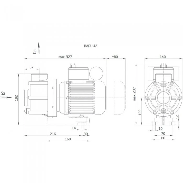 Компактный нормальновсасывающий Насос Speck BADU 42/6 из пластика без префильтра для обслуживания гидромассажных СПА и водных аттракционов в бассейне. Насос блочного типа, торцевое уплотнение находится на пластиковом носике рабочего колеса. Вал электромотора не соприкасается с водой бассейна! Дополнительная электрическая изоляция.