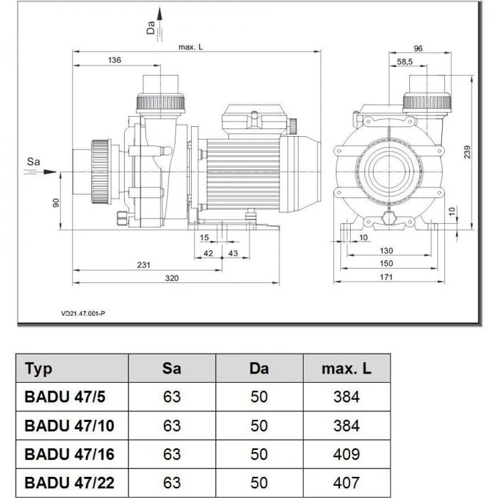 Нормальновсасывающие циркуляционные насосы BADU 47 в виде моноблока с интегрированным устройством самодренажа. Рассчитан на обслуживание гидромассажных установок в плавательных бассейнах и СПА. Насос блочного типа, торцевое уплотнение находится на пластиковом носике рабочего колеса. Вал электромотора не соприкасается с водой бассейна! Дополнительная электрическая изоляция.