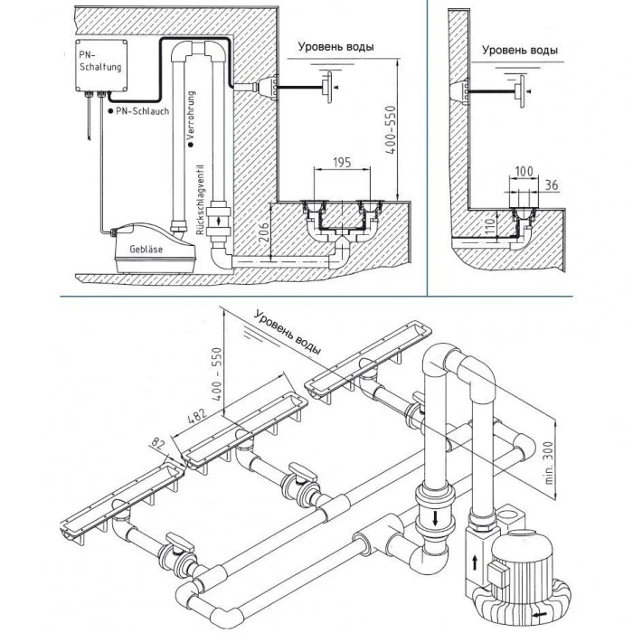 Насосный комплект аэромассажа FitStar, плато из нержавеющей стали 250 мм.