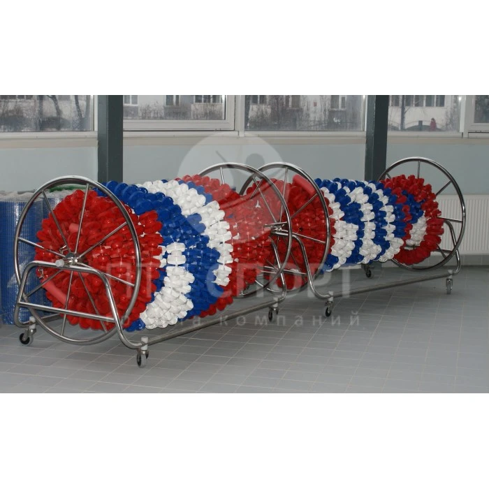 Роллеры для разделительных дорожек предназначены для хранения дорожек с волногасителями и поплавками. Обычно разделительные дорожки для бассейна находятся непосредственно в бассейне, но бывают моменты, когда нужно почистить бассейн, поменять дорожки или расширить пространство, в таких случаях нужно их убирать.