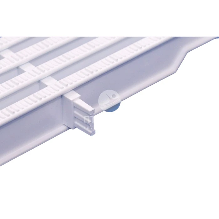 Решетки для каналов перелива бассейна, или переливные решетки, используются для защиты каналов перелива вокруг бассейна. Нужная длина решетки набирается из модулей, которые вставляются один в другой. Для участков с изгибами используются переливные решетки с одним замком шириной 195, 245 или 295 мм. Для прямых участков выпускаютя решетки шириной 295 мм с двумя замками. Высота всех решеток 22 и 35 мм. Поверхность решеток ребристая, волнообразная. Стандартный цвет - белый, возможны другие цвета на заказ. Все решетки выполнены из полипропилена высокого давления и имеют все необходимые сертификаты качества.