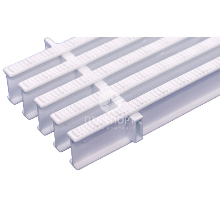 Решетки для каналов перелива бассейна, или переливные решетки, используются для защиты каналов перелива вокруг бассейна. Нужная длина решетки набирается из модулей, которые вставляются один в другой. Для участков с изгибами используются переливные решетки с одним замком шириной 195, 245 или 295 мм. Для прямых участков выпускаютя решетки шириной 295 мм с двумя замками. Высота всех решеток 22 и 35 мм. Поверхность решеток ребристая, волнообразная. Стандартный цвет - белый, возможны другие цвета на заказ. Все решетки выполнены из полипропилена высокого давления и имеют все необходимые сертификаты качества.
