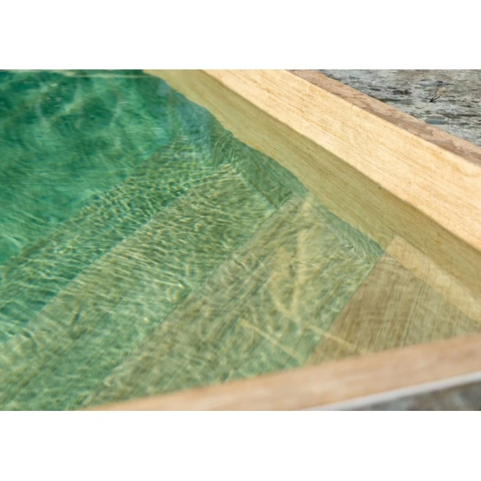 В конце длительного процесса разработки достигнута уникальность дизайна, который предлагает настоящий вызов натуральному дереву. Благодаря сложному процессу печати и тиснения создана облицовка, которая идеально вписывается в Look & Feel самых высококлассных бассейнов.