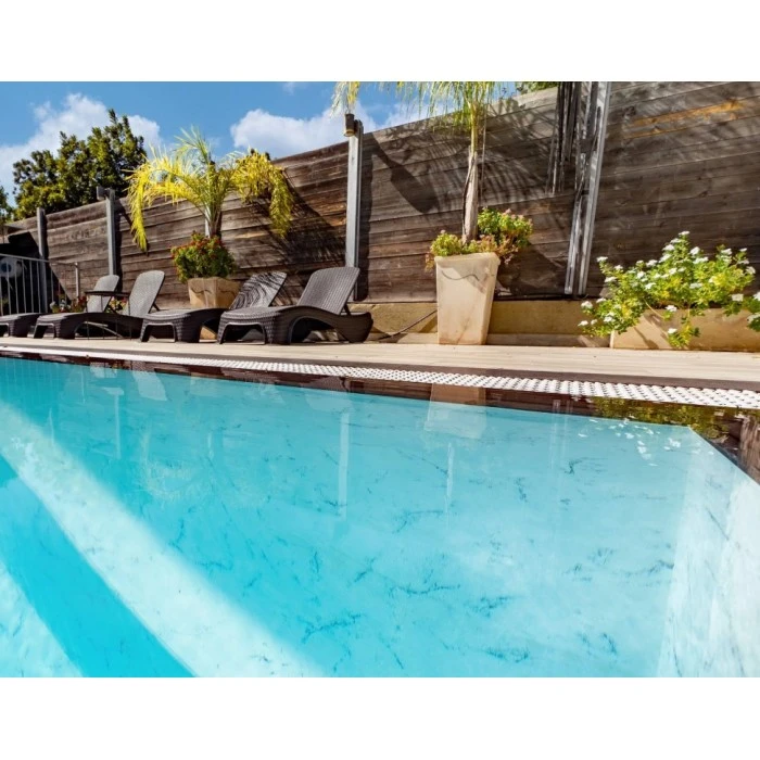 Эксклюзивный ассортимент конструкций StoneFlex позволяет построить или отремонтировать бассейн с использованием водонепроницаемой мембраны с 3D-поверхностью, которая выглядит как настоящий камень. Мембраны StoneFlex разработаны с улучшенным поверхностным покрытием, которое обеспечивает превосходную устойчивость к пятнам, легкую очистку и исключительную устойчивость к ультрафиолетовому излучению, а также ощущение сухого камня и нескользящее сцепление.
