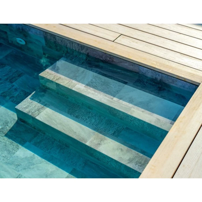 Представляет собой отличное решение для гидроизоляции при строительстве или ремонте бассейна. Ассортимент StoneTile создан на основе исключительных материалов, включая улучшенное покрытие, обеспечивающее превосходную устойчивость к пятнам, устойчивость к ультрафиолетовому излучению и нескользящую поверхность с перфорацией из камня. Размеры плиток различаются, в основном 40 см Х 20 см.