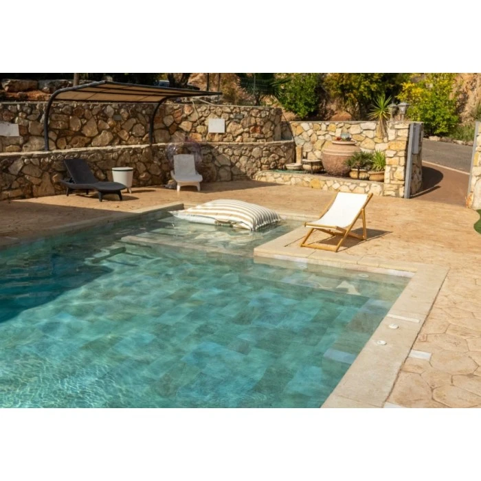 Представляет собой отличное решение для гидроизоляции при строительстве или ремонте бассейна. Ассортимент StoneTile создан на основе исключительных материалов, включая улучшенное покрытие, обеспечивающее превосходную устойчивость к пятнам, устойчивость к ультрафиолетовому излучению и нескользящую поверхность с перфорацией из камня. Размеры плиток различаются, в основном 40 см Х 20 см.