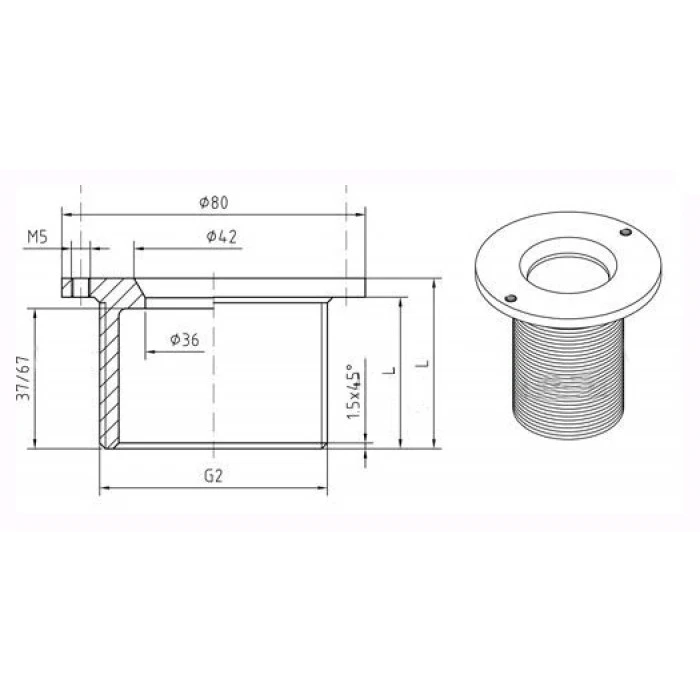 Подающая, направленная форсунка AllFit, 40 мм, НР 2″ (плитка)