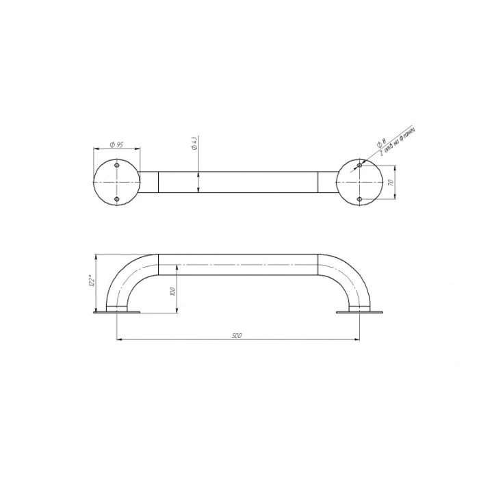 Поручни комплектуются крепежом и прокладками. Диаметр 43 мм