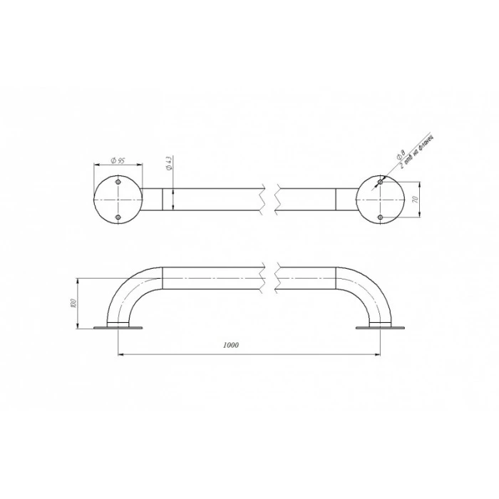 Поручни комплектуются крепежом и прокладками. Диаметр 43 мм