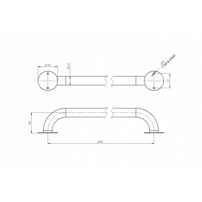 Поручни комплектуются крепежом  и прокладками. Диаметр 43 мм