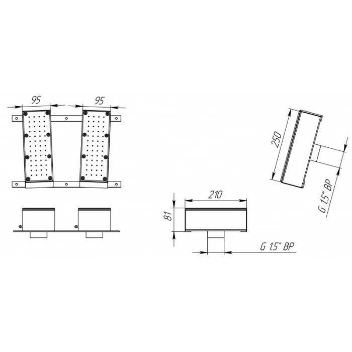 Сиденье аэромассажное двухполосное из нержавеющей стали AISI 304 для бассейнов, облицованных пленкой. Состоит из двух частей (сиденья и спинки).