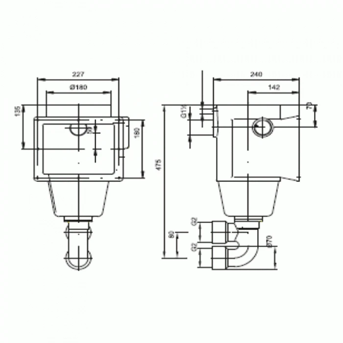 Скиммер 240 мм с 2 выходами,2″ ВР, RG (плитка)