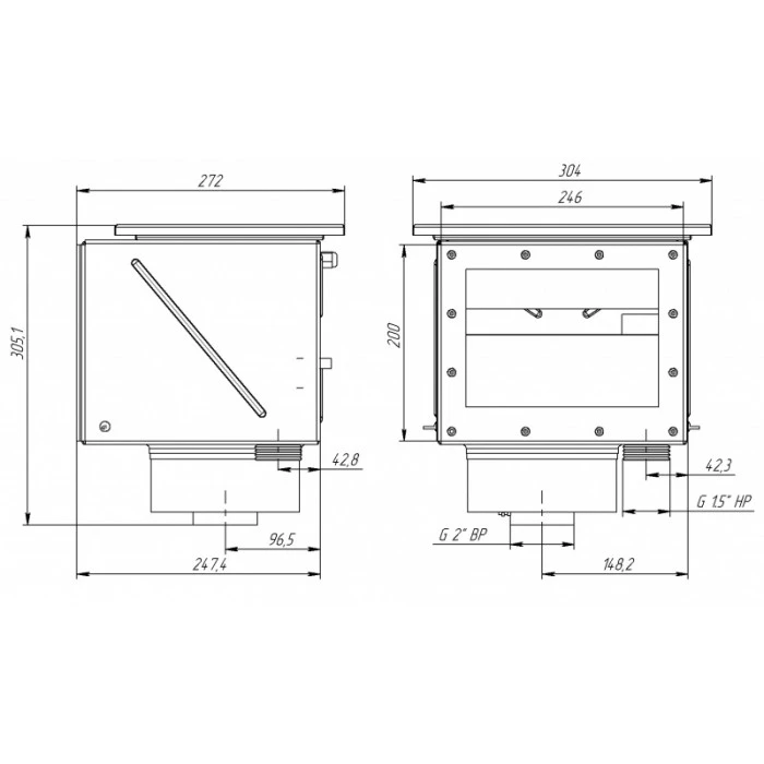 Монтируется в стену. Присоединение к фильтру - внутренняя резьба 2’’, к аварийному переливу - наружная резьба 1,5".