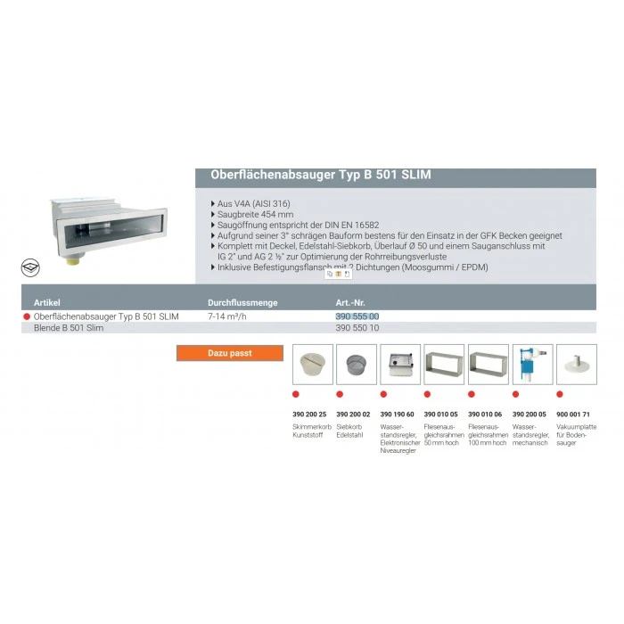 Скиммер В501 Slim с углом наклона 6° (сборный)