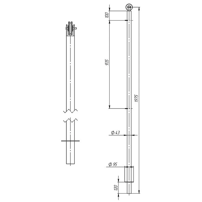 Стойка с натяжным роликом. В комплекте 1 шт. Для монтажа требуется анкер.
