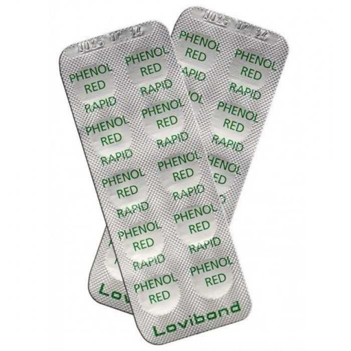 Phenol Red используется для измерения pH. Таблетка производит характерные изменения цвета при растворении в пробе воды. Значение pH важно для дезинфицирующего действия средств по уходу за водой. Это также может вызвать коррозию или осаждение и тем самым повредить материалы. Таблетка быстрого растворения была разработана для использования в тестерах. В упаковке 250шт