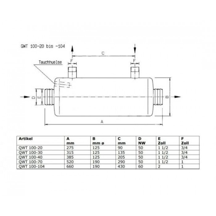 Теплообменник Behncke QWT 100-70, 70 кВт (1½"-1") для пресной воды. Предназначен для нагрева воды от источников тепла (бойлер, тепловая сеть, т.д.), нагретая вода проходя через теплообменник, передает тепловую энергию в систему бассейна. Изготовлен из нержавеющей кислотостойкой стали марки AISI-316L, корпус покрашен и покрыт лаком. Подходит для любого типа инсталляций (котлы, тепловые насосы, солнечные панели и др.). Теплообменник оборудован прочной спиралью для нагрева воды, что позволяет его использовать в системах с высоким давлением. Теплообменник Behncke QWT представляет собой циллиндрический сварной кожух, в котором установлен змеевик. С помощью насоса фильтра вода из бассейна попадает в теплообменник. При контакте воды со змеевиком происходит передача тепловой энергии. Таким образом вода в бассейне нагревается. Если температура воды становится выше установленного значения на термостате, срабатывает автоматическая блокировка подачи воды в теплообменник.