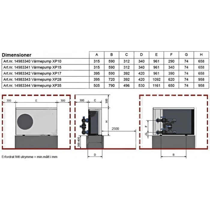 мощность max (воздух-26°C/ вода 26°C): 3,0-15,0 кВт;