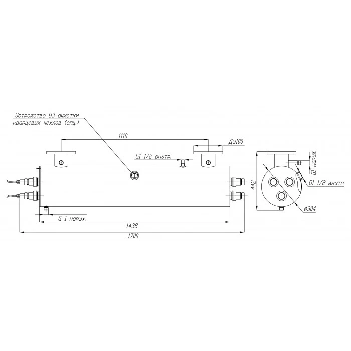 Вы можете доукомлектовать генератором ультразвука ранее приобретенные установки базовой комплектации. Его монтаж и запуск в работу просты – достаточно установить головку ультразвука в предусмотренное для этого на корпусе УФ-установки посадочное отверстие и подключить источник питания генератора к сети. Перенастройка основного шкафа питания УФ-установки не потребуется.