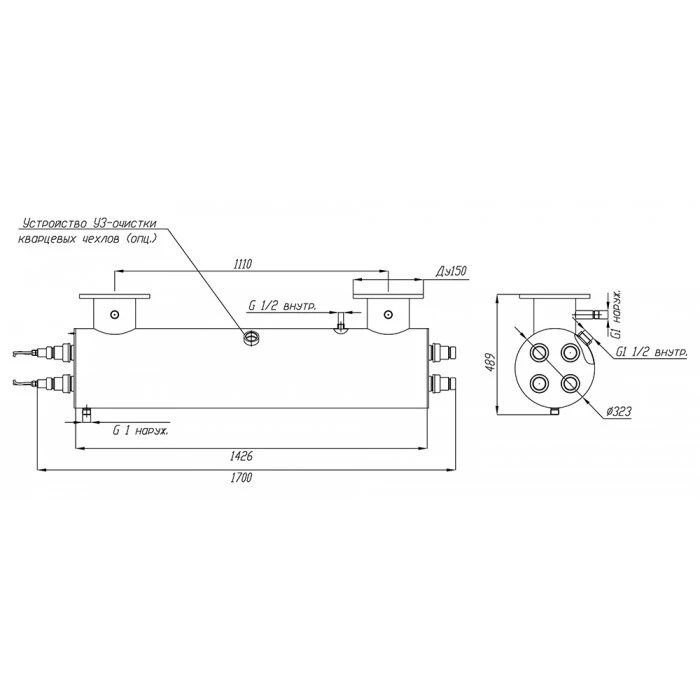 габариты камеры обеззараживания: D323 х 1426 мм;
