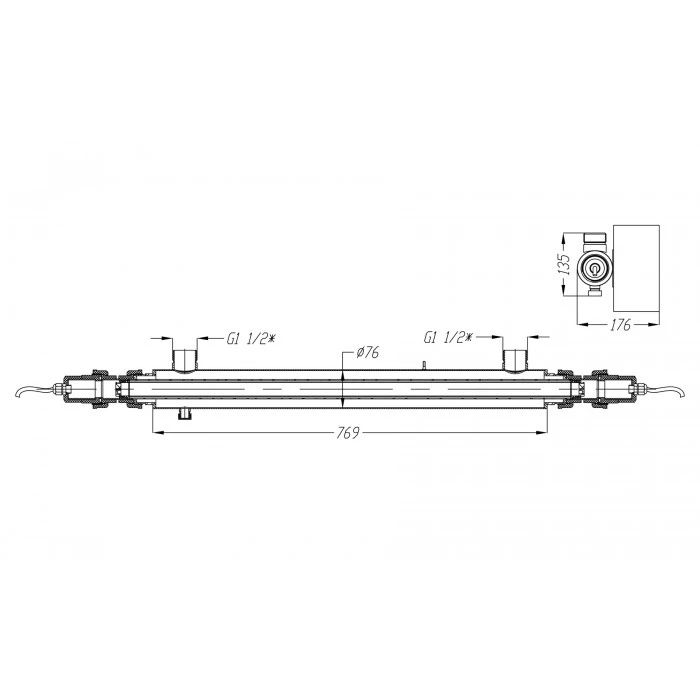кварцевый чехол для УФ-ламп 55 Вт – 1 шт;