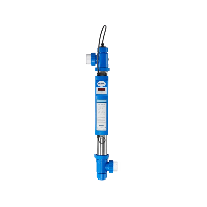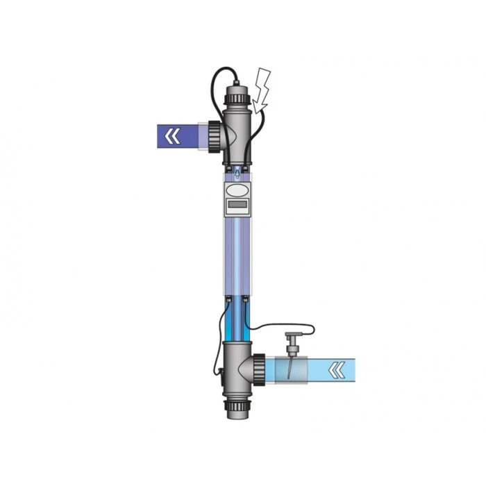 Ультрафиолетовая обработка нейтрализует запах хлора, уничтожает вирусы, бактерии и грибок, предотвращает появление водорослей, защищает глаза и кожу от раздражения. Применение ультрафиолетовой обработки совместно с реагентной дезинфекцией снижает потребление хлора на 20%. Установка оснащена встроенным блоком питания, сглаживает колебания тока и защищает лампу. В блок питания встроен таймер, который отслеживает количество рабочих часов лампы и сигнализирует о необходимости ее замены.