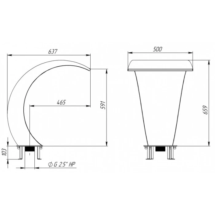 Изделие изготовлено из листовой нержавеющей стали марки AISI 304, вес 16,2 кг. Водопад Кобра 500 устанавливается на борт бассейна. Ширина изливающегося потока: 500 мм.