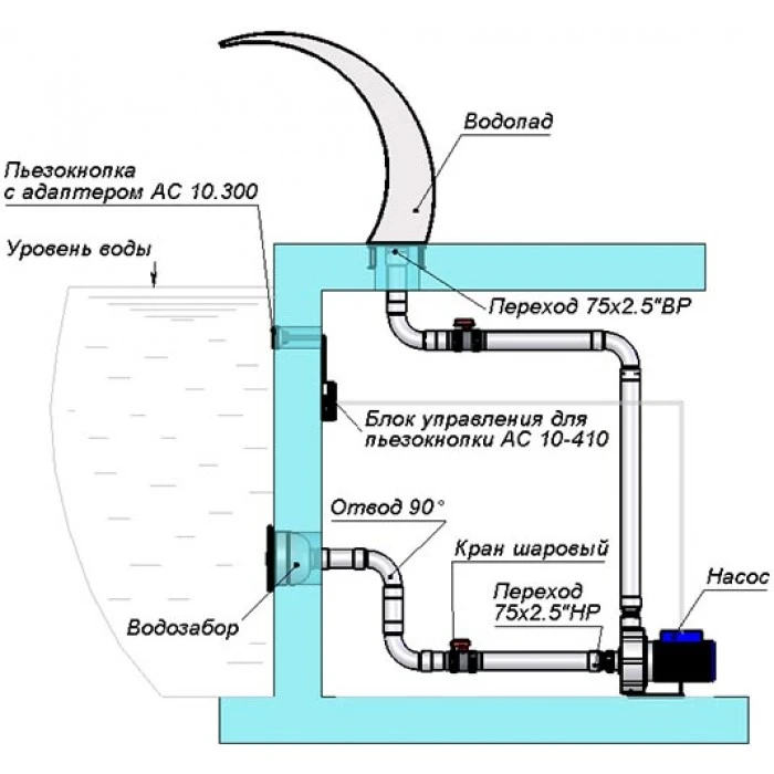 Получаемый эффект - ниспадающий поток воды различной ширины и интенсивности. Тонизирует мышцы, снимает стресс. Придает бассейну неповторимый шарм, способствует лучшему водообмену.