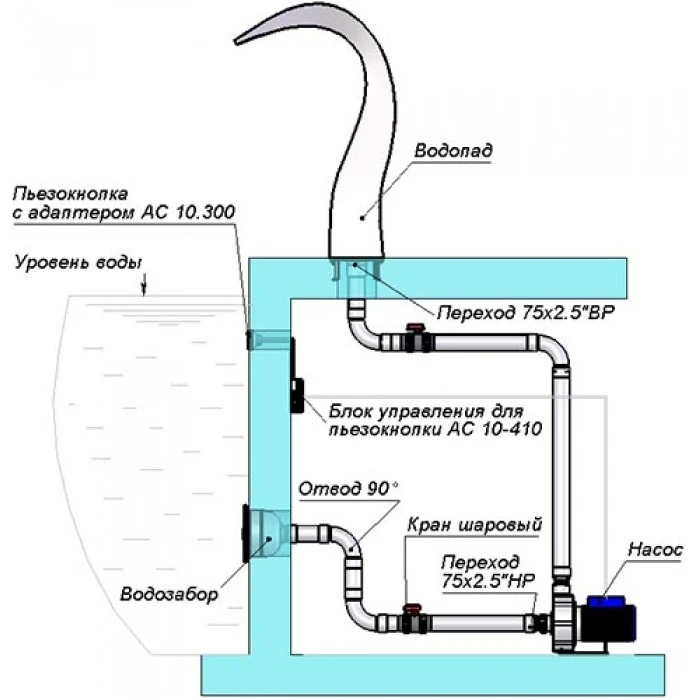 Получаемый эффект - ниспадающий поток воды различной ширины и интенсивности. Тонизирует мышцы, снимает стресс. Придает бассейну неповторимый шарм, способствует лучшему водообмену.