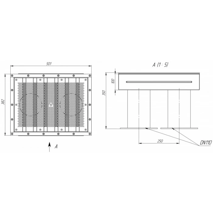 Этот водозабор расчитан на высокий расход воды и применяется, в основном, при использовании мощных насосов. Состоит из закладной детали и перфорированной решетки. Комплектуется прижимным фланцем, уплотняющей прокладкой и винтами.