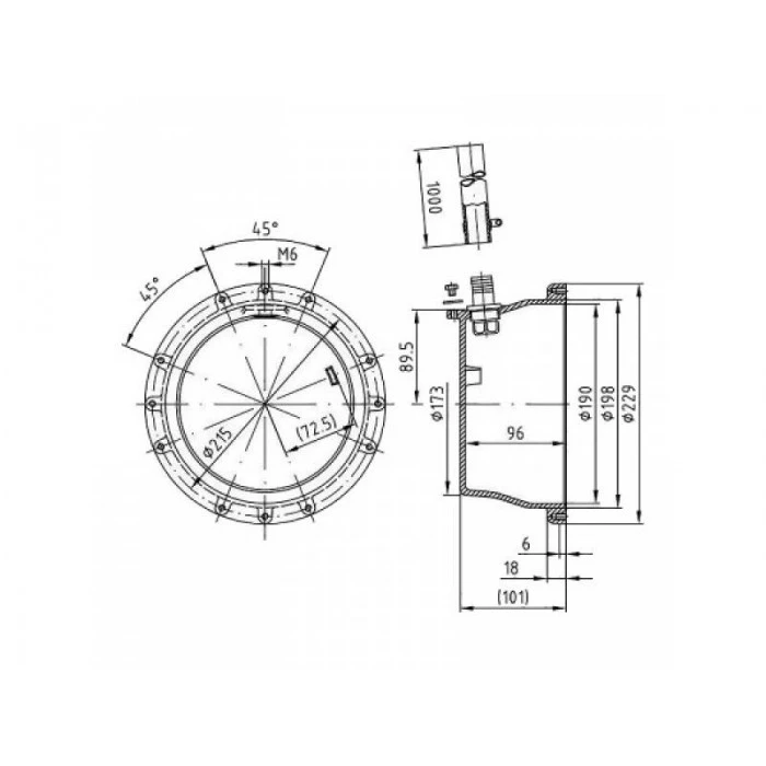 Закладная деталь прожектора 270 мм, со шлангом для кабеля, RG (пленка)